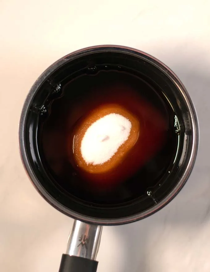It’s made from a blend of soy sauce, sugar, and mirin (a sweet rice wine), and sometimes includes sake for added depth.