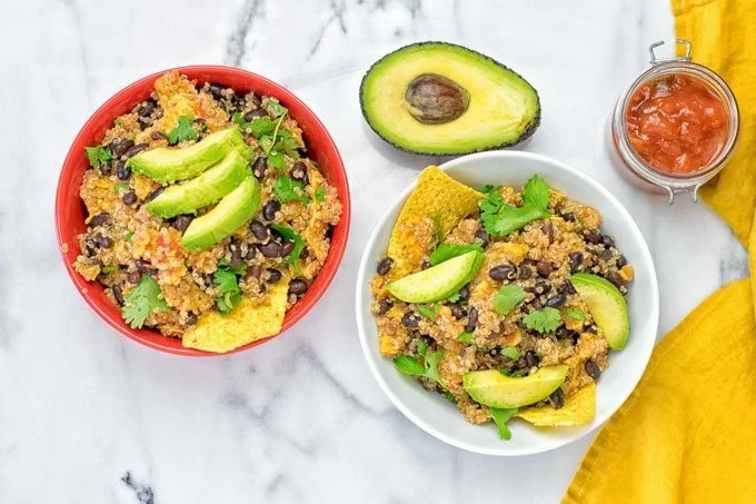 Thank you Florian for inspiring me to make this! I cooked it in my new instant pot. I didn't have very much salsa so I chopped up fresh tomatoes, an onion, and fresh cilantro adding those to the quinoa to cook like another reviewer suggested adding the salsa to the quinoa to cook for flavor. I, also, had some dehydrated black beans an chili seasoning from trader Joes's that I tossed into the mixture, adding more water. After it all cooked, I added diced avocados, more fresh cilantro, and the salsa and oh boy was it wonderful! I ate mine in a bowl while hubby put his on a tortilla and added lettuce and cheese -- yay, he went meat-free! Thank you for inspiring me to make this delicious, healthy, and easy meal with the beautiful, colorful pictures and simple ingredients and your blog helping inspire us!! Much appreciation for you!!