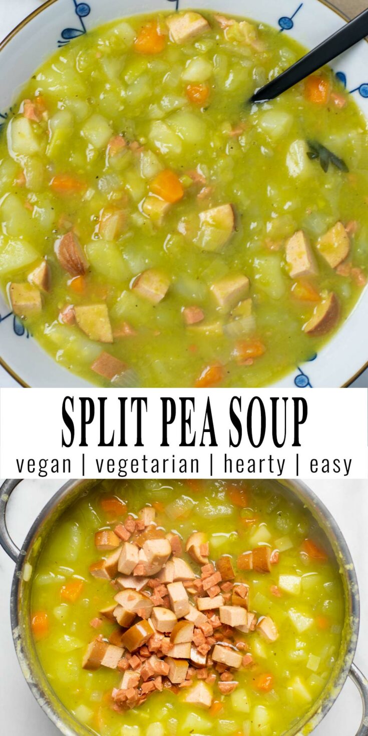 Split Pea Soup is easy to make, warming, filling and rich in flavor. A comfort soup made with potatoes, fresh vegetables and vegan sausage. It is a winner that will be so enjoyable all year round, even for pickiest eaters.