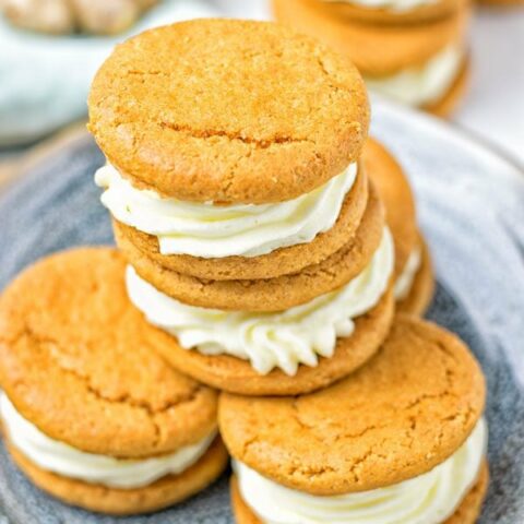 I know you will love these Whoopie Pie Ginger Cookies. They are truly the best of both worlds, satisfying, infused with fresh ginger, warming, creamy, timeless, elegant, drool worthy, remarkable, shareable, and seriously a must make for everyone.